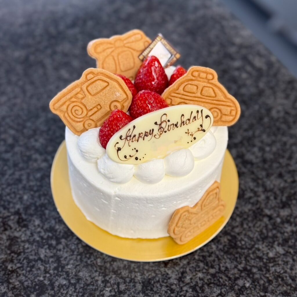 【生クリーム4号】クッキーアレンジ_#A2028 2025.08.312025.07.30 ▲生クリーム4号+店頭販売商品(クッキー) 定番ケーキ(いちごのみデザイン)に、店頭販売中のクッキーをトッピング。急なご注文にご対応可能(※1)なアレンジです♪ (※1)定番ケーキはお電話予約受付ますが、店頭販売商品をトッピング希望の場合は、事前入金後、製造に取り掛かります。 当日受け渡しのケーキは、受け取り希望時間や店頭のご予約状況により、受付できない事がありますので、ご了承くださいませ。