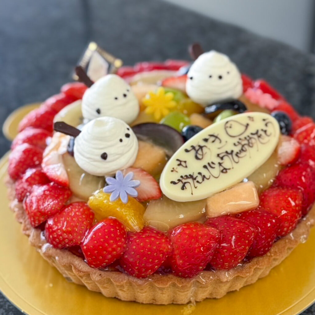 【タルト6号】フルオーダーケーキ_#F2076 2025.11.212025.09.08 ▲フルオーダーケーキフルーツタルト6号+シマエナガ3体 ※定番ケーキにも、シマエナガ加工ができます。 生クリームで作ったシマエナガが、愛嬌たっぷりです💓白い身体が、フルーツのカラフルな土台でよく映えます♪