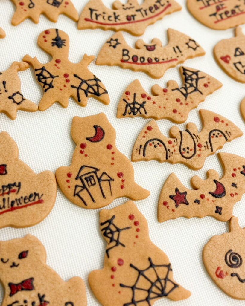 ハロウィンクッキー 2025.09.12 【ハロウィンクッキー】🎃期間限定!¥450 裏表にそれぞれ文字やイラスト入り、世界に1つのデザインクッキーです🎃🦇スイートチョコをサンドしました。 お名前入りなどオーダーデザインも承ります! <期間限定>2025年ハロウィン