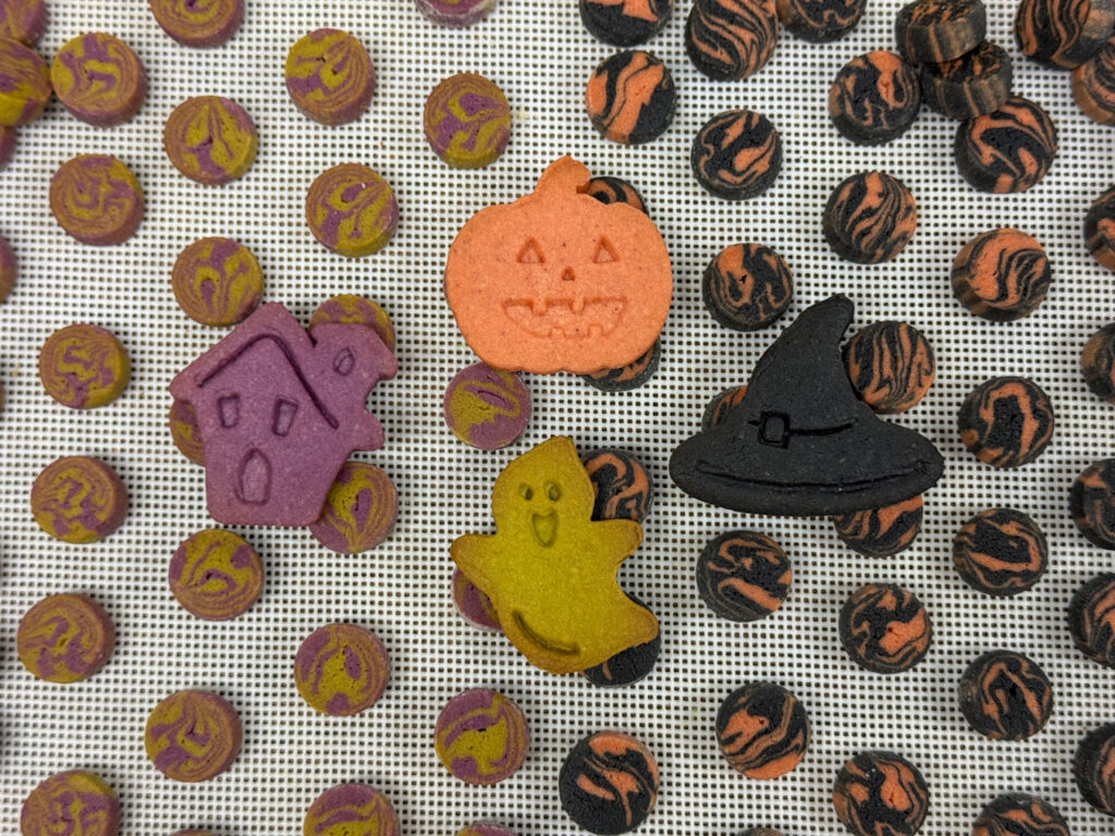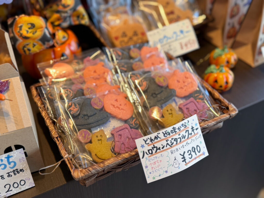 ハロウィンベジタブルクッキー 2025.10.032025.09.13 【ハロウィンベジタブルクッキー】🎃期間限定!1袋 ¥390 毎年あっという間に完売する、「見た目と味のギャップ」をテーマに作ったベジタブルクッキーです👩🍳 かぼちゃ、紫芋、オレンジ、ラズベリー、竹炭などのパウダーを練り込んだクッキーは、見た目でイメージする味とは違うかも? ハロウィン4色クッキー●むらさきいも●かぼちゃ●オレンジ●ラズベリー どれがどの味かな!?是非試してみてください♪ <期間限定>2025年ハロウィン