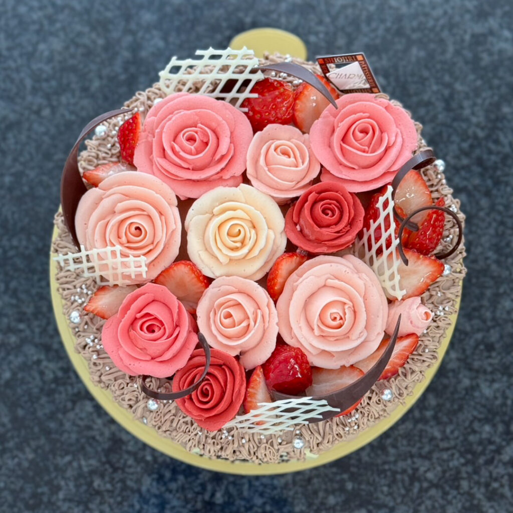 【生チョコクリーム6号】バラの花増量_#R2181 2025.11.102025.11.08 ▲バラの花ケーキ(ピンク系)生チョコクリーム6号+バラ増量 まるでBOXフラワーのように、ケーキ上面に豪華なバラといちごを敷き詰めました💐 ※バラのみ、フルーツ色々と組み合わせなどアレンジ可能です。