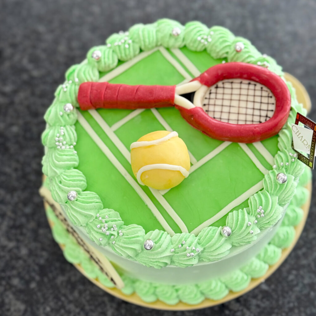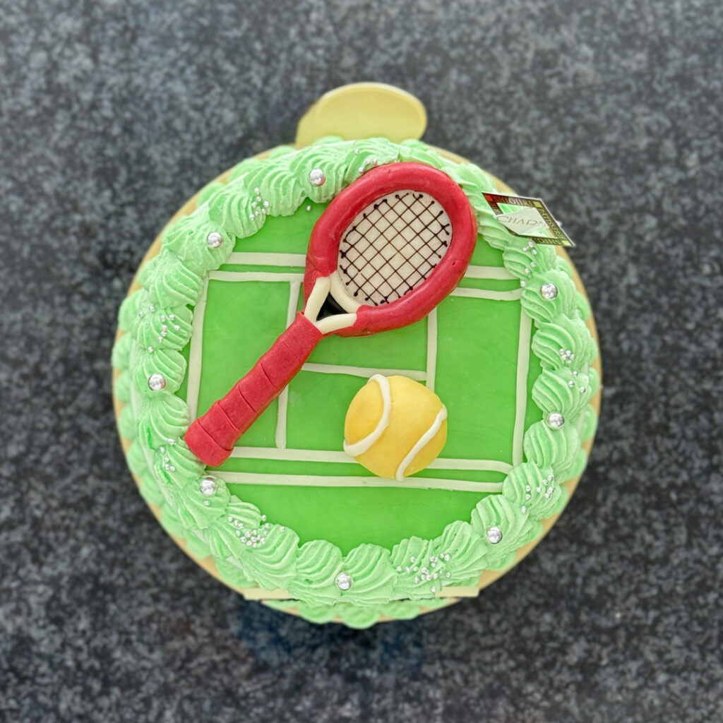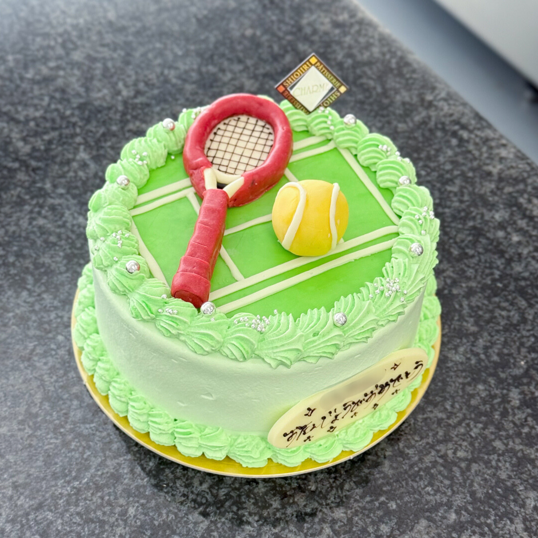 【生クリーム5号】テニス_フルオーダー_#F2619 2026.03.172026.03.08 ▲生クリーム5号+クリーム着色 +チョコレート細工 希望デザインをお預かりして製作しました。ラケットの赤色がポイントです。 ※細かな加工を要するフルオーダーケーキは、繁忙期の製造ができかねます。日時はご相談くださいませ。