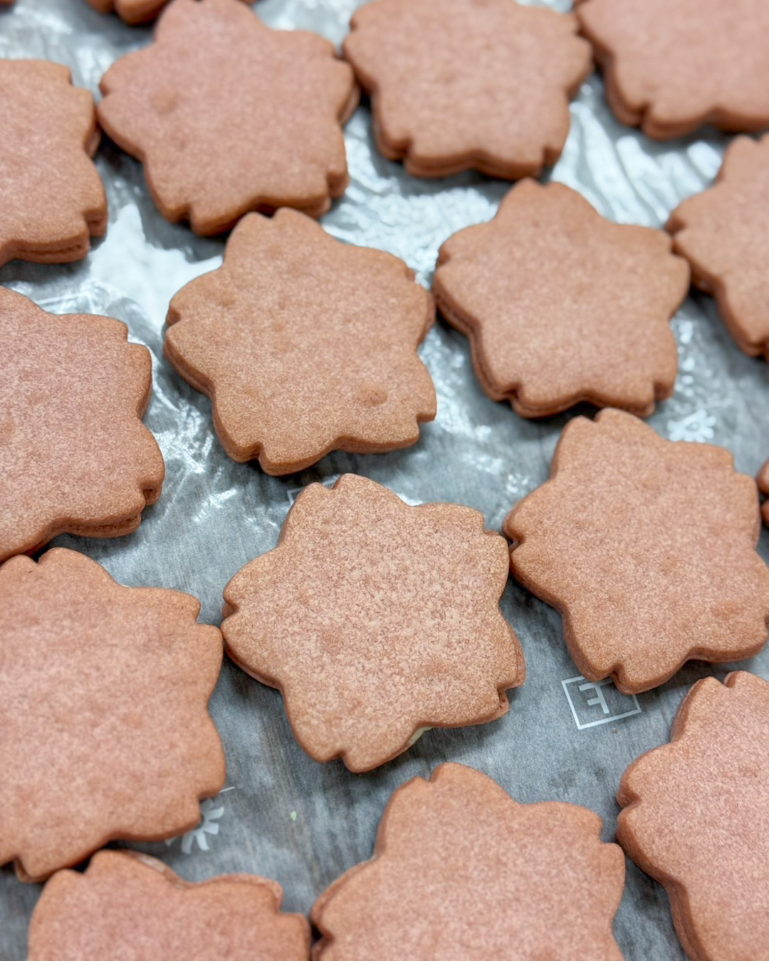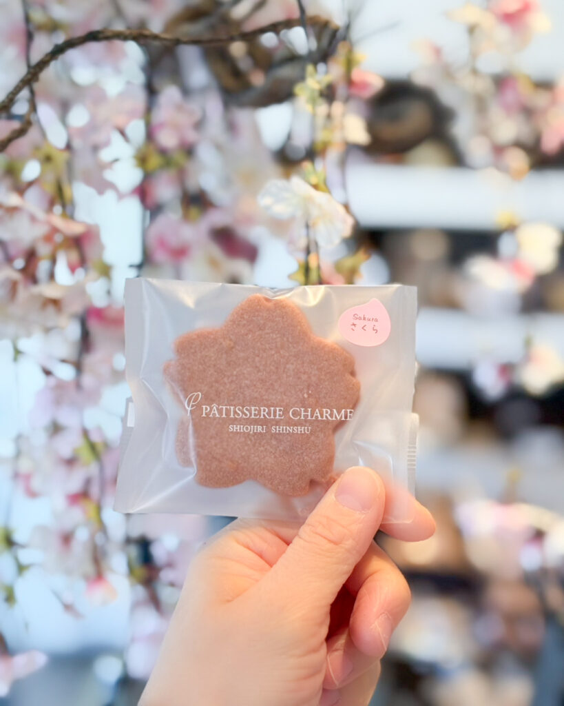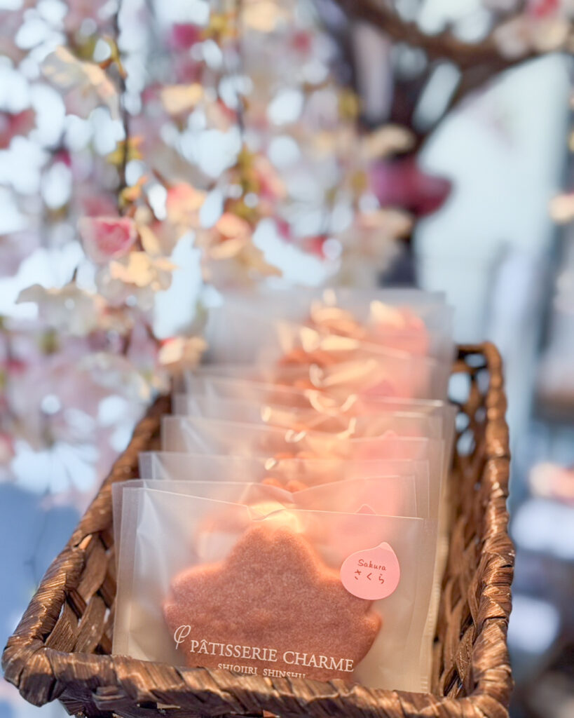桜の花サンドクッキー 2026.02.27 【桜の花サンドクッキー】 桜葉入りのホワイトチョコを、桜の花香るクッキー生地でサンドしました🌸原料の桜は全て国産です。 桜原料で一般的な、コチニール色素は使用しておりません。