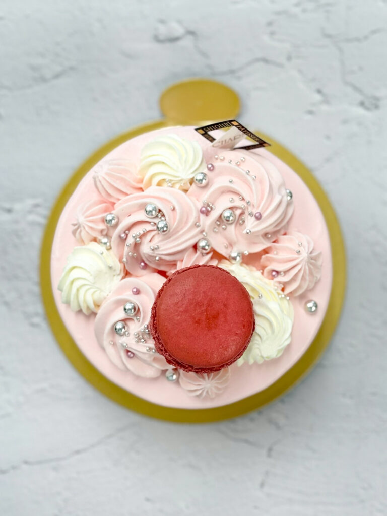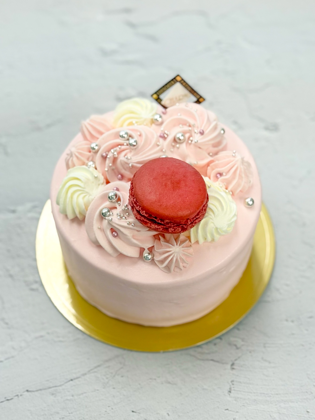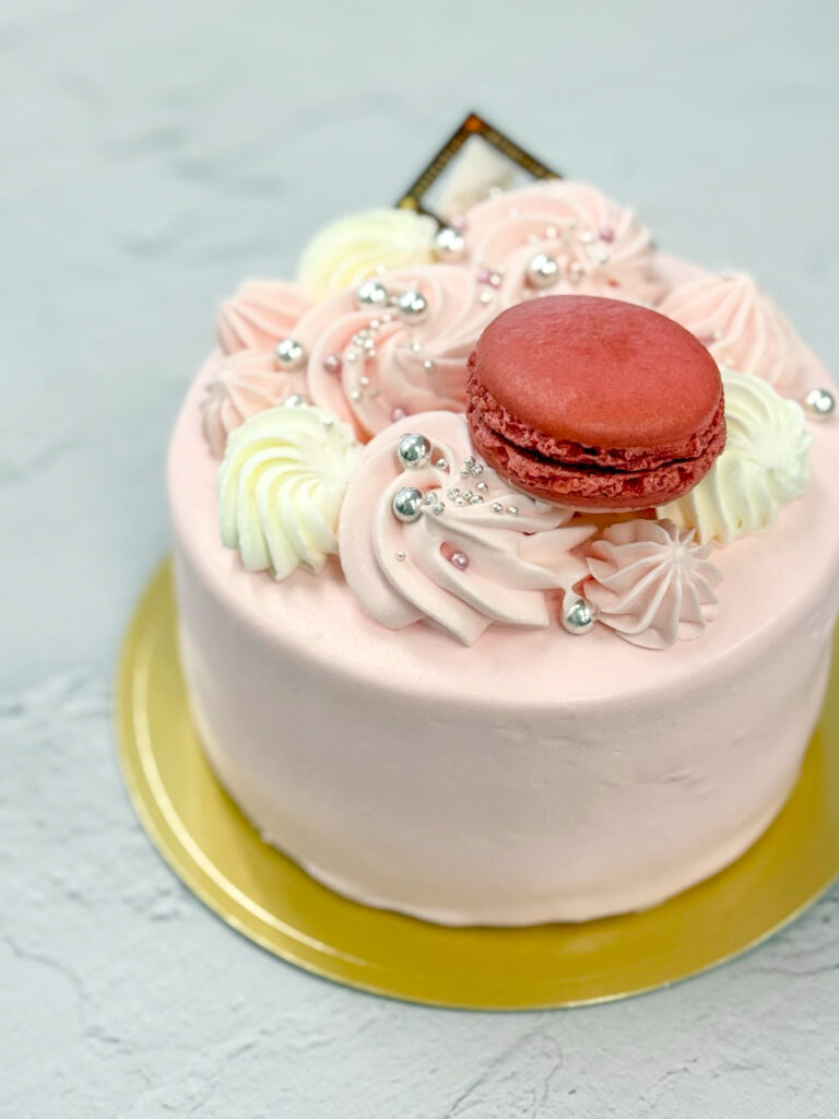 【生クリーム4号】着色&マカロン_フルオーダー_#F2714 2026.04.082026.04.03 ▲生クリーム4号+着色+マカロン 淡いピンクのケーキ。春らしいカラーが素敵です🌸 ※マカロンは店頭販売している9種類の中からお選びいただきます。マカロンフレーバーやカラーのオーダー制作は行っておりません。