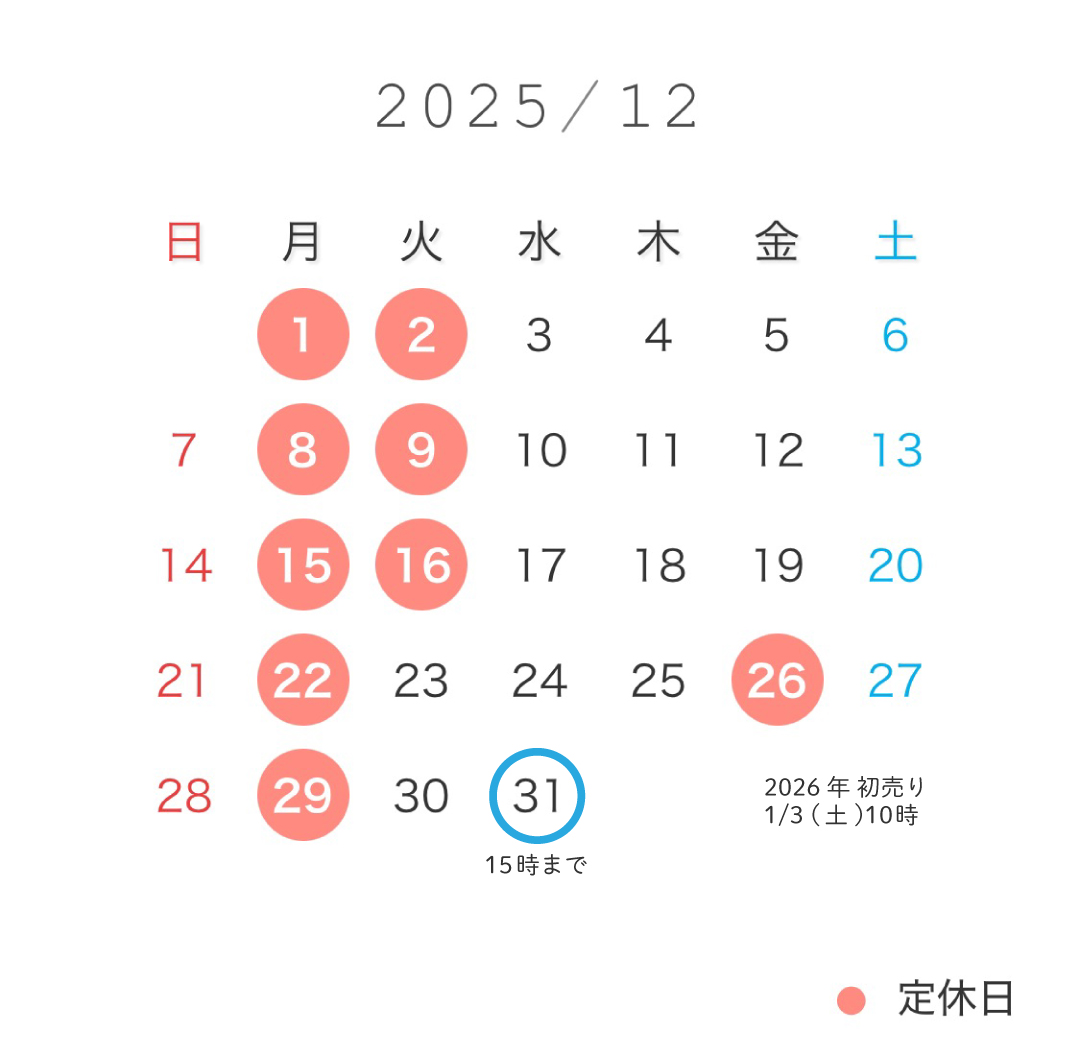 ✐12月の定休日とご案内