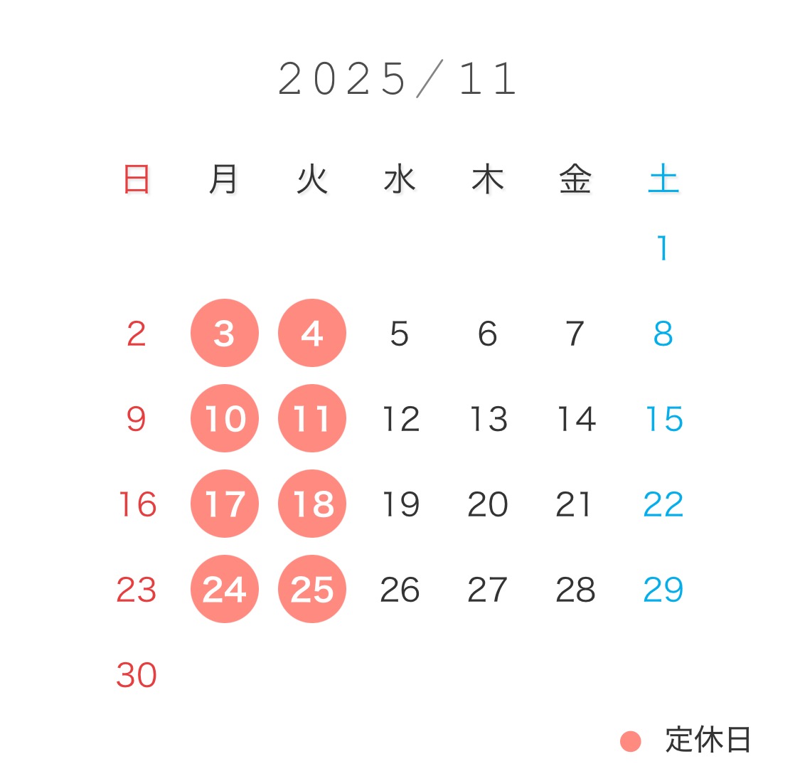 定休日のご案内