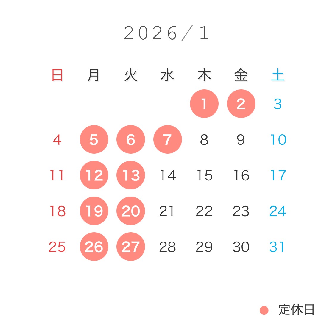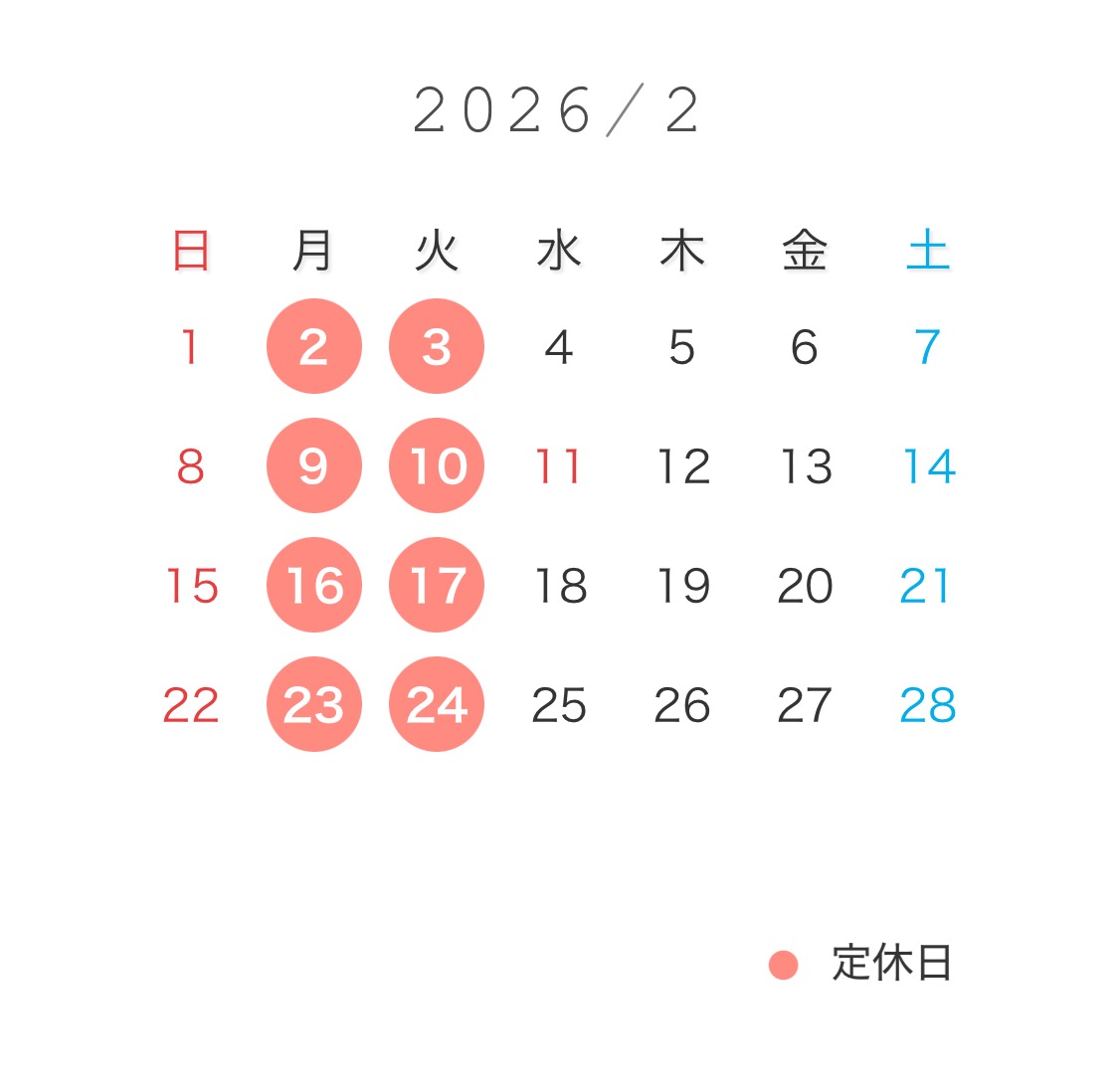 定休日のご案内 2026.01.112024.02.21 ✐1月の定休日とご案内 初売りは1/3(土)10:00〜 1月はお休みが変則的です。ご迷惑をおかけいたしますがよろしくお願いいたします。 本格的にチョコレートの販売がスタートします。お楽しみに! ✐2月の定休日とご案内 バレンタイン商品は、お早めのご予約がおすすめです🎁